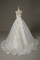 White Sleeveless Tulle Brush Train Lace Up Wedding Dress for Wedding Party