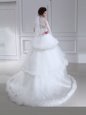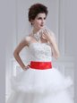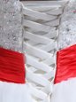 White Sleeveless With Train Beading and Ruffled Layers Lace Up Bridal Gown