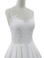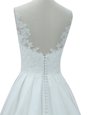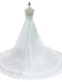 White Sleeveless With Train Lace Zipper Wedding Dress