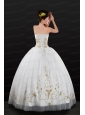 White Strapless 2015 Quinceanera Dress with Beading and Embroidery