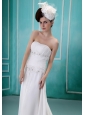 White Strapless Custom Made Wedding Dress With Ruched Bodice and Beading