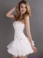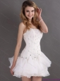 White Strapless Mini Length Prom Dresses with Rhinestones