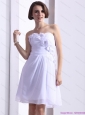 White Strapless Prom Dresses with Ruching and Hand Made Flower