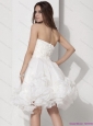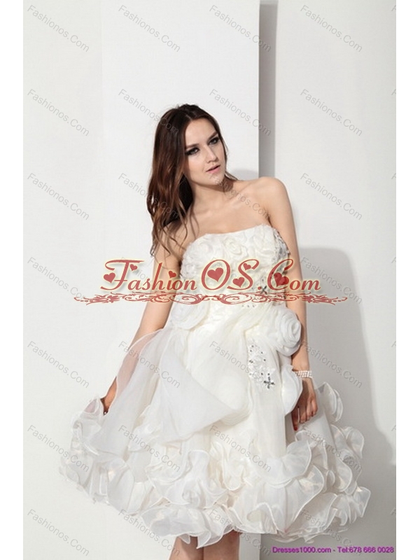 White Strapless Ruffled Short Wedding Dresses with Hand Made Flower