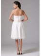 Make an entrance in this elegant and romantic white short gown. The strapless bodice hemed by the riches is simple yet gorgeous. A coordinating waist sash adds interest and detail to the mid-section of the dress. The wasistband in the middle contours your curve. The simple hidden zipper up completes the look.Simple yet graceful. It is a great choice for you.