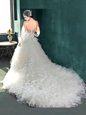 White Sweetheart Backless Beading and Ruffles Wedding Dresses Chapel Train Cap Sleeves