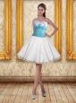 White Sweetheart High Low 2015 Prom Dresses with Blue Embroidery