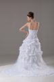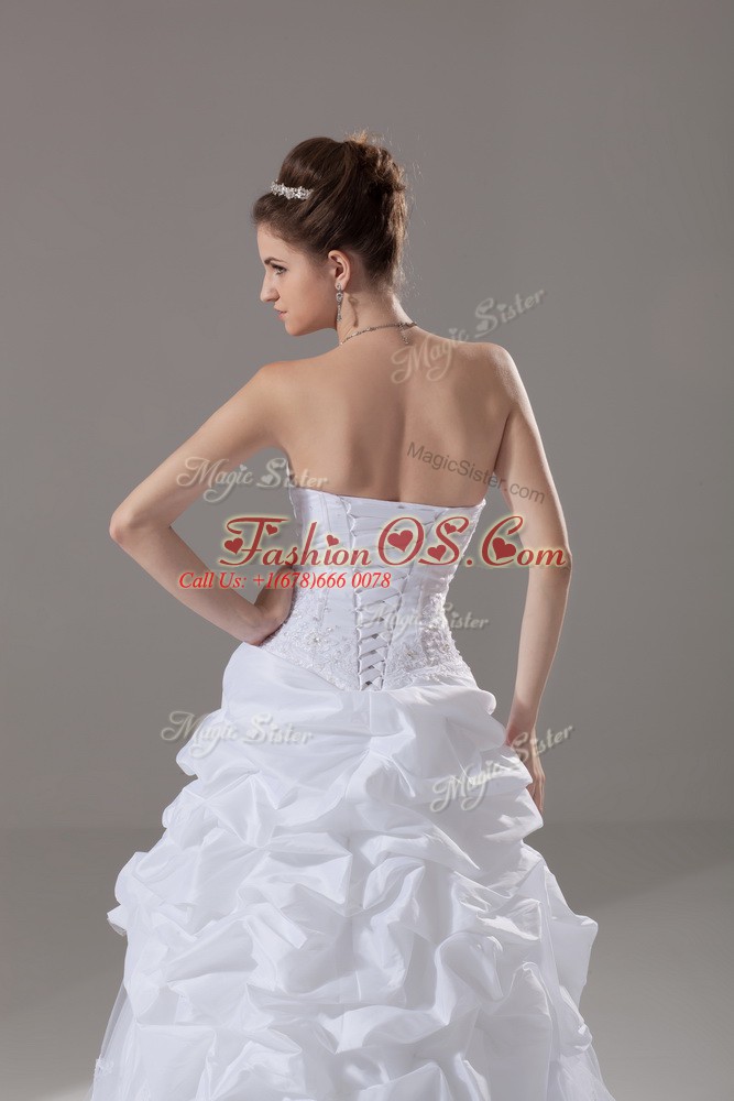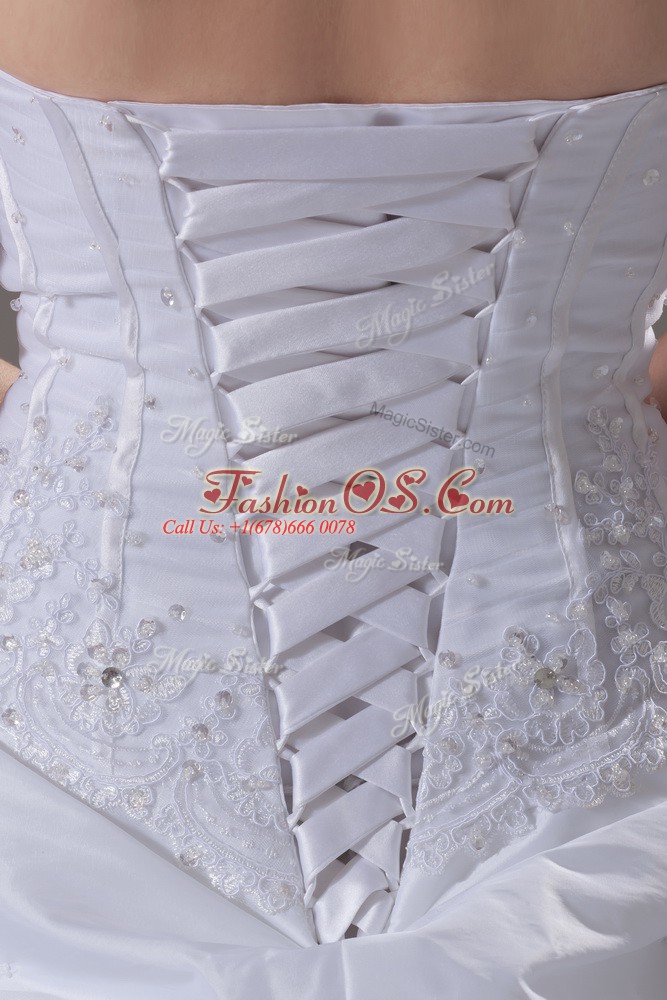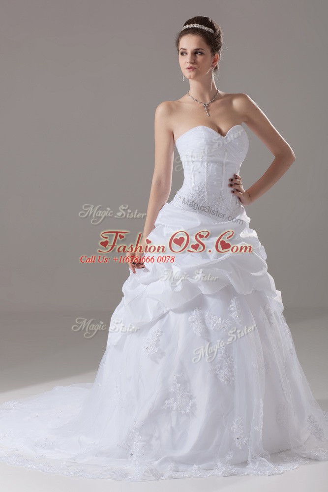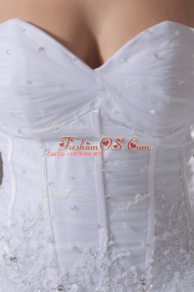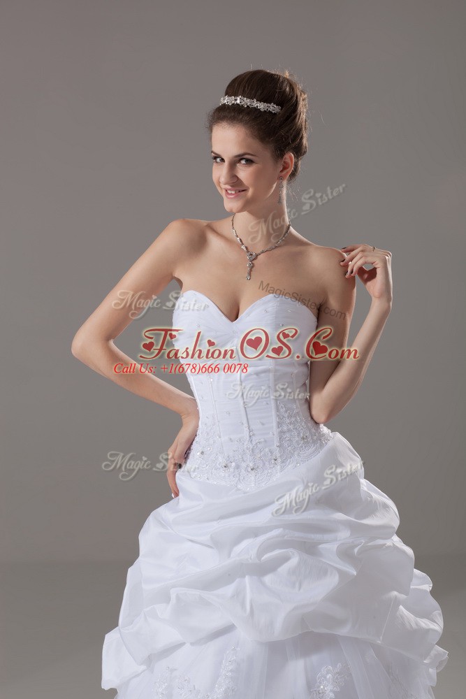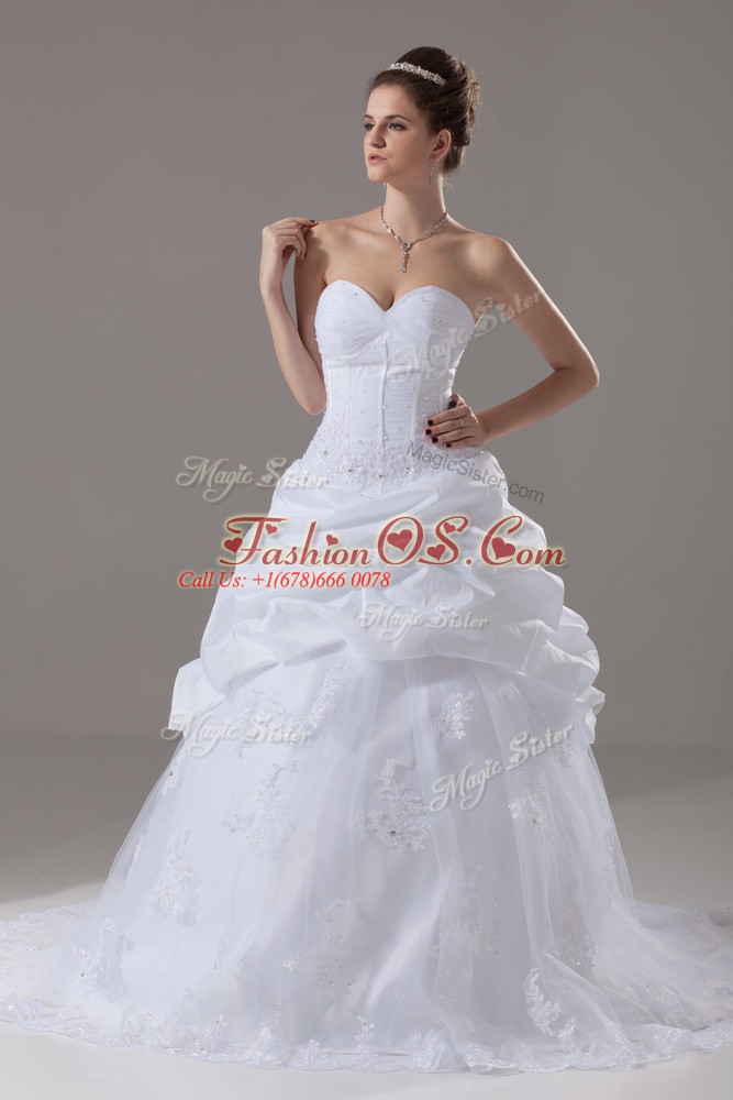 White Sweetheart Lace Up Beading and Lace and Pick Ups Wedding Gown Brush Train Sleeveless