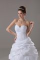 Home >  Wedding Dresses >  Wedding Dresses 2018 > White Sweetheart Lace Up Beading and Lace and Pick Ups Wedding Gown Brush Train Sleeveless