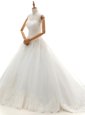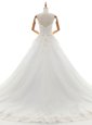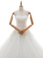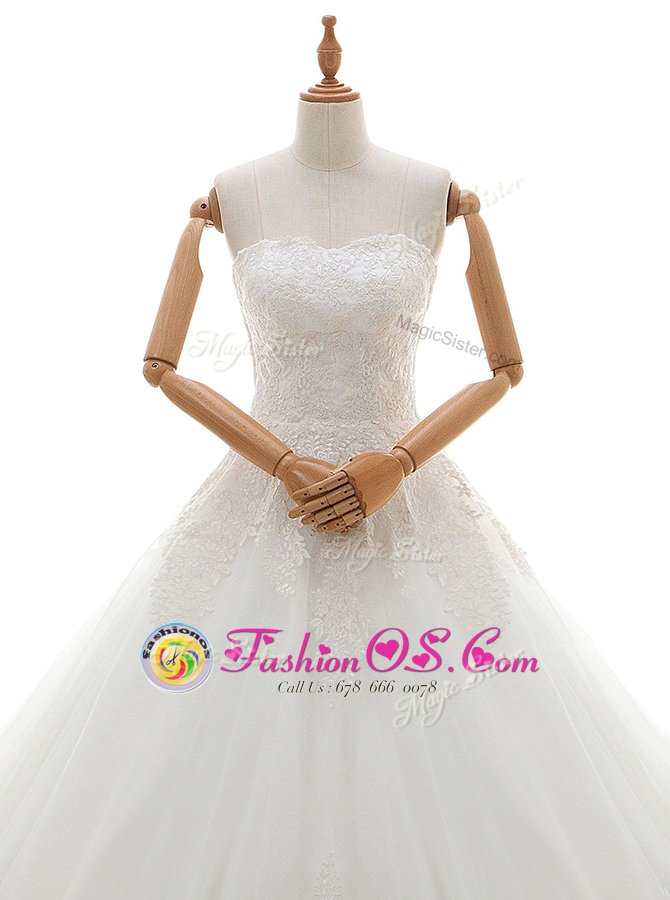 White Sweetheart Lace Up Lace and Appliques Wedding Gowns Brush Train Sleeveless