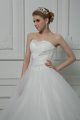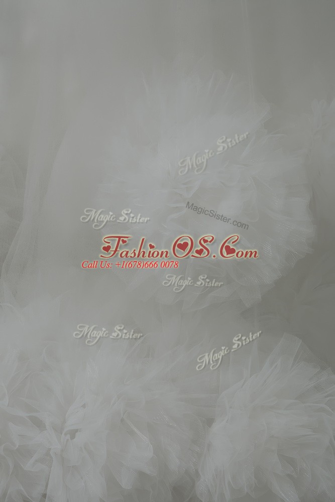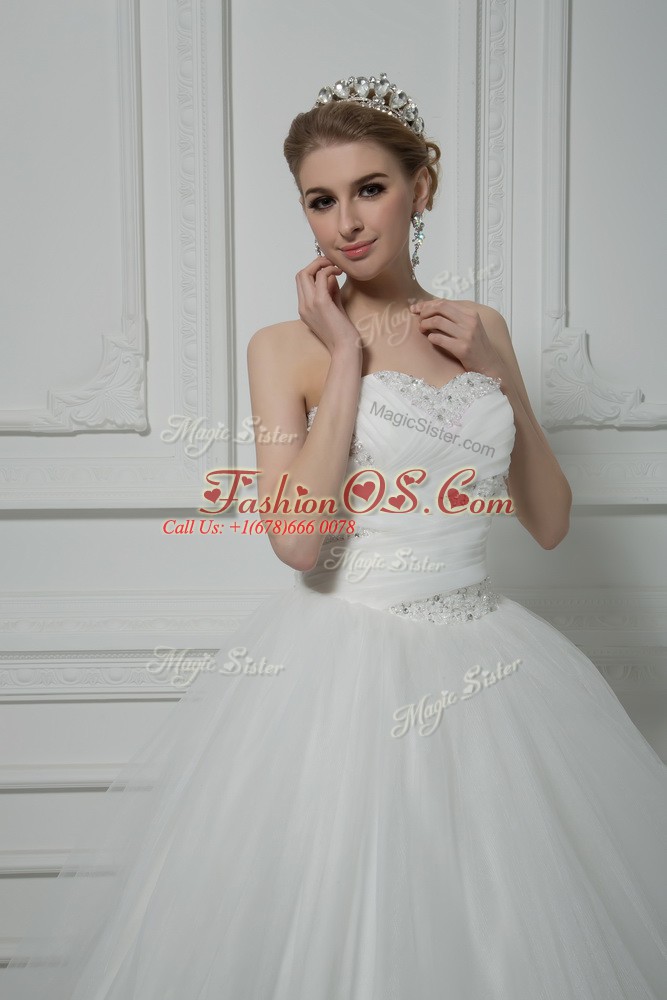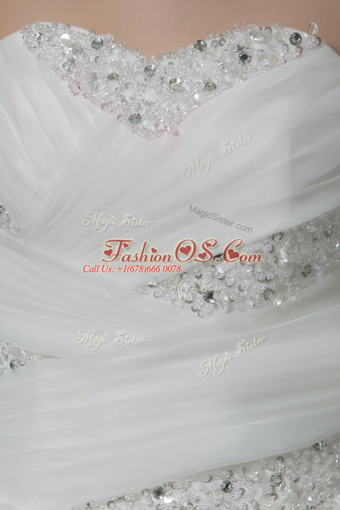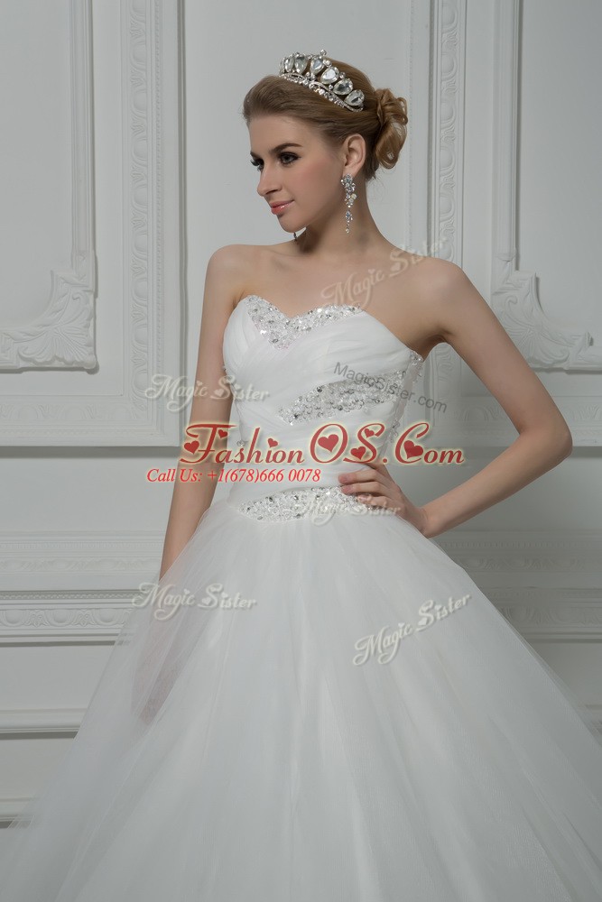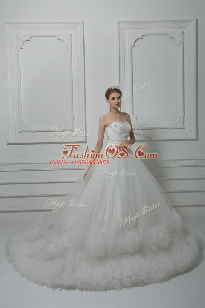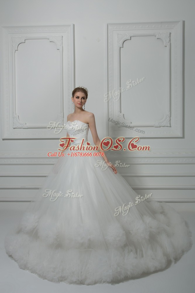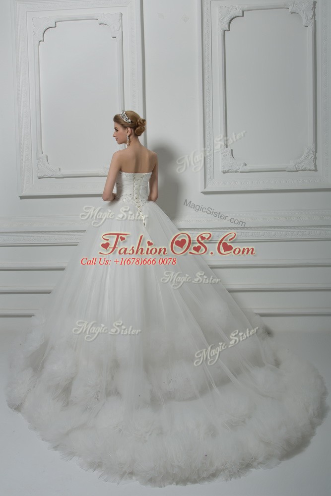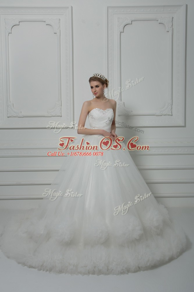 White Sweetheart Neckline Beading and Hand Made Flower Wedding Gowns Sleeveless Lace Up