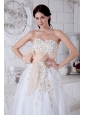 White Sweetheart Prom / Evening Dress with Gold Detail