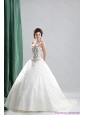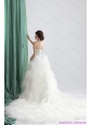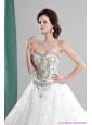 White Sweetheart Rhinestones Wedding Beach Dresses with Chapel Train and Ruffles