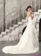 White Sweetheart Ruching Beach Wedding Dresses with Brush Train