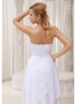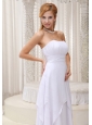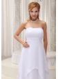 Wearing a pure white dress in the wedding is the dream of every girl. This strapless design features a sweetheart neckline and the pleated bust line. A ruched waistband encircles the fitted bodice. Back zipper closure. The skirt is made from sevrial tiers of chiffon that add to its shape and beauty. Simple, but lovely!