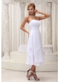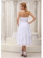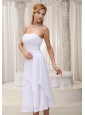 White Tea-length Ruched Cheap Dama Dress