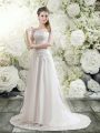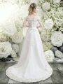 White Tulle Clasp Handle Scoop Long Sleeves Wedding Dress Brush Train Lace