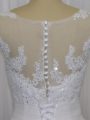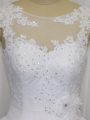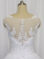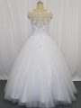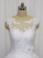 White Tulle Clasp Handle Scoop Sleeveless Floor Length Wedding Dresses Beading and Lace and Hand Made Flower
