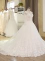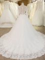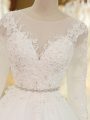 White Tulle Zipper Wedding Gown Long Sleeves Chapel Train Beading and Lace and Appliques