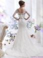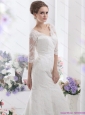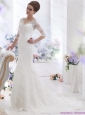 White V Neck Lace Wedding Dresses with Brush Train and Half Sleeves