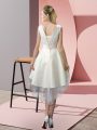 White V-neck Neckline Lace and Bowknot Prom Dresses Sleeveless Lace Up