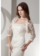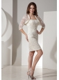 This dress is lovely and romantic! Short and elegant dresses are just as much fun to wear as they are to look at. This short wedding dress is accented with a straightline neckline and knee-length skirt with pen shape to hug your hip and envelope your legs. The matching jacket is highlighted with sheer lace fabric that increases your charm. The zipper up complete the overall look.