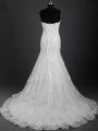 White Wedding Dresses Tulle Brush Train Sleeveless Lace