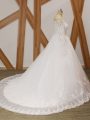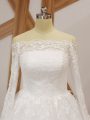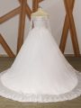 White Wedding Gown Organza Court Train Long Sleeves Beading and Appliques