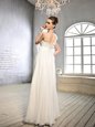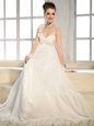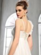 White Wedding Gown Wedding Party and For with Ruching and Hand Made Flower Asymmetric Sleeveless Lace Up