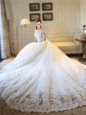 White Wedding Gowns Off The Shoulder Half Sleeves Cathedral Train Zipper