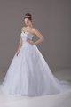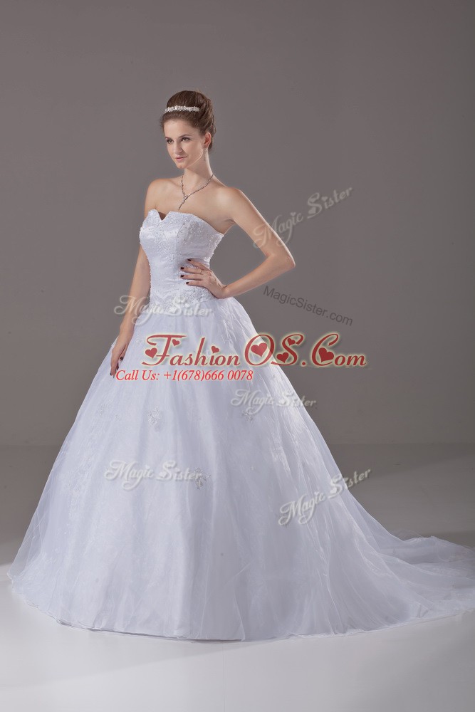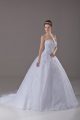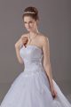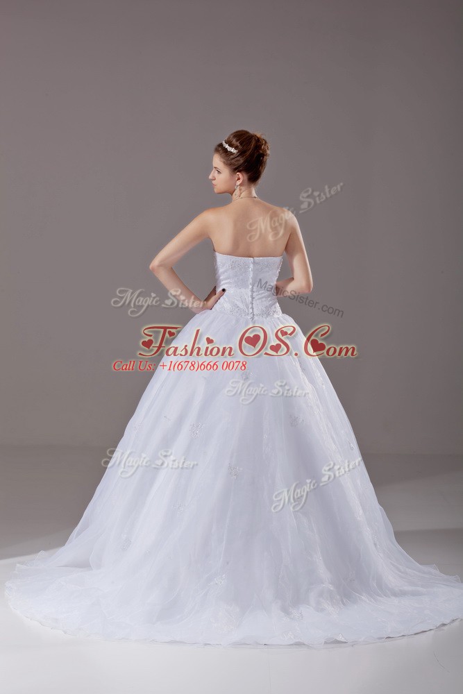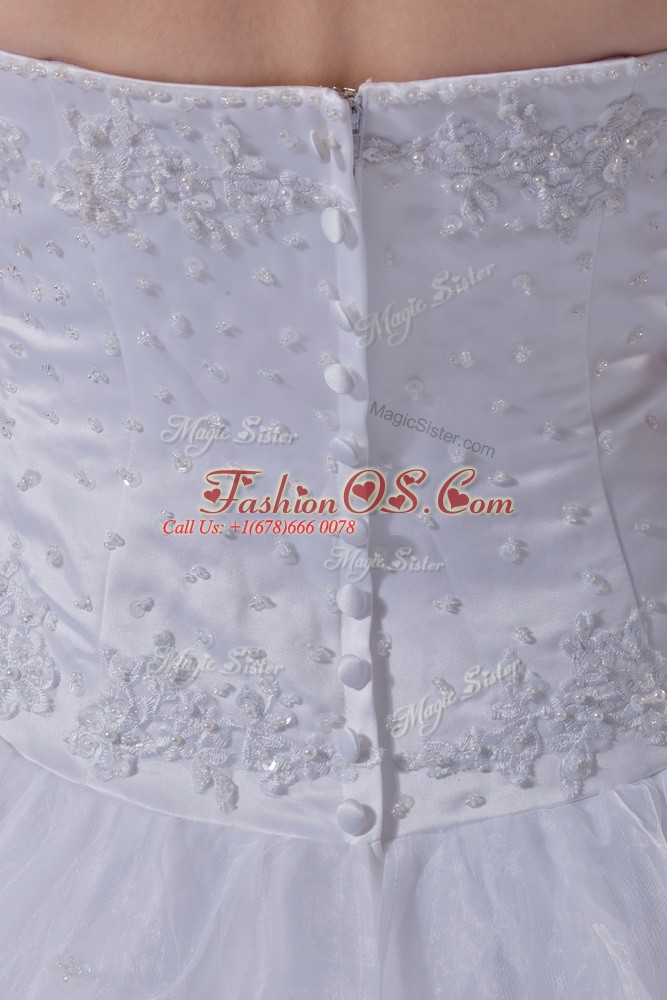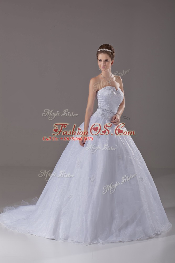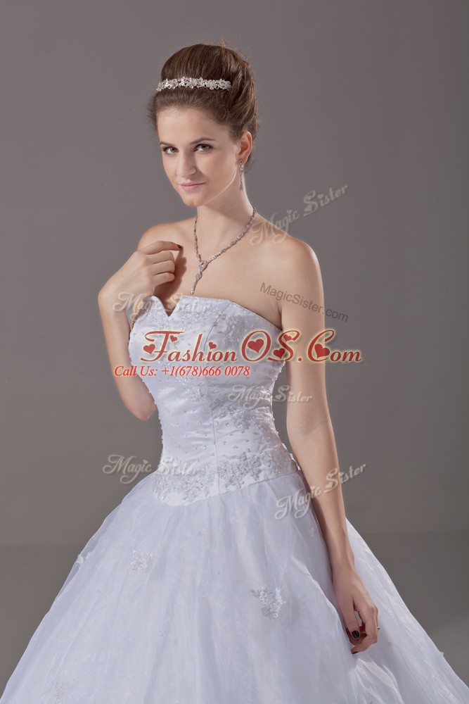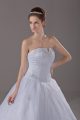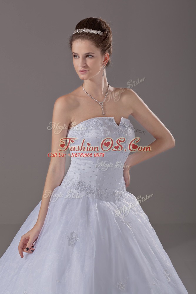 White Zipper Strapless Sleeveless Wedding Gown Brush Train Beading