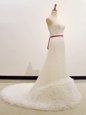 White Zipper Wedding Dress Lace Sleeveless Sweep Train