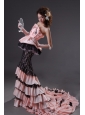 Whitefish Mermaid Light Pink and Black Taffeta and Lace Appliques Brush Train Ruffled Layers 2013 Prom / Evening Dress