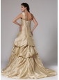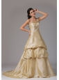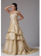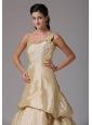 Wholesale A-line Champagne One Shoulder Prom Dress With Appliques Decorate Bust Ruffled Layered In Guilford Connecticut