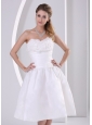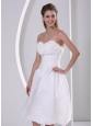 People will lavish you with attention when you wear this fabulous minidress! The gorgeous sweetheart adorned with white flowers and broad ruched waistband introuce the figure-hugging bodice. The skirt flows out from the empire waist line and is made fortaffeta. The skirt flows beautifully with a loose fit that will make it easy to dance the night away. A hidden zipper makes for easy off and on and secures the dress in place.