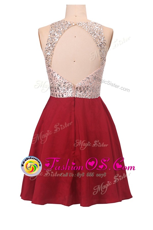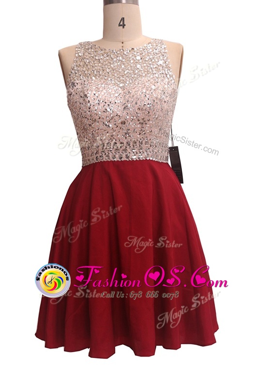 Home >  Prom Dresses >  Fashionable Prom Dresses > Wine Red A-line Chiffon Scoop Sleeveless Sequins Knee Length Zipper Dress for Prom
