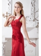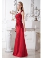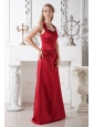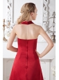 Wine Red A-line Halter Prom Dress Satin Ruch Floor-length