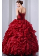 Home >  Quinceanera Dresses >  Pretty Quinceanera Dresses > Wine Red A-Line / Princess Sweetheart Beading and Ruffles Quinceanea Dress Floor-length Organza