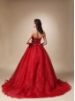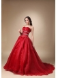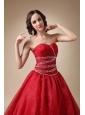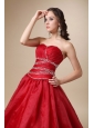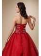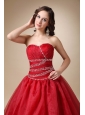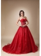 Wine Red A-Line / Princess Sweetheart Chapel Train Taffeta and Organza Beading Quinceanea Dress