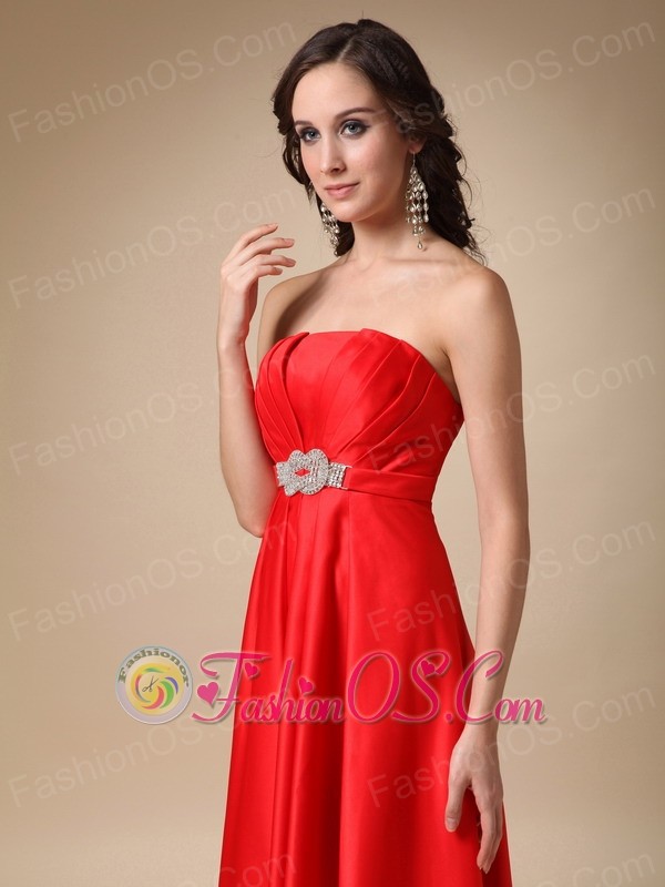 This red prom dress will light your inner passion! This wonderful one features a pleated bodice with a straightline and a ornament fixed the waistband. The A-line skirt draps from high waist to floor. A hidden zipper makes for easy off and on and secures the dress in place. It truly is an example of high end couture fashion!