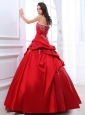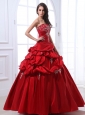 Home >  Quinceanera Dresses >  Cute Quinceanera Dresses > Wine Red Appliques and Pick-ups Quinceanera Dress With Floor-length Taffeta In 2013