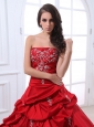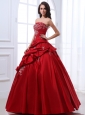 Wine Red Appliques and Pick-ups Quinceanera Dress With Floor-length Taffeta In 2013