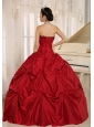 Wine Red Ball Gown Quinceanera Dress With Pick-ups For Custom Made Taffeta In Haiku City Hawaii