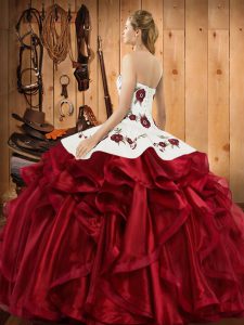 Wine Red Ball Gowns Embroidery and Ruffles 15 Quinceanera Dress Lace Up Organza Sleeveless Floor Length