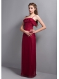 Wine Red Chiffon Bridesmaid Dress with Straps