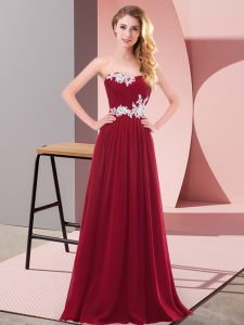 Wine Red Chiffon Lace Up Sweetheart Sleeveless Floor Length Prom Evening Gown Appliques