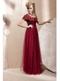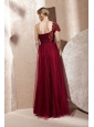 Home >  Evening Dresses > Wine Red Column / Sheath One Shoulder Floor-length Tulle Beading Prom / Evening Dress