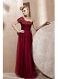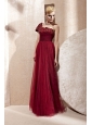Wine Red Column / Sheath One Shoulder Floor-length Tulle Beading Prom / Evening Dress