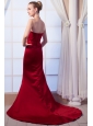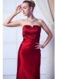 Home >  Prom Dresses >  Discount Prom Dresses > Wine Red Column Strapless Prom Dress Satin Beading Brush Train