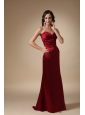 Home >  Prom Dresses >  Cheap Prom Dresses > Wine Red Column Sweetheart Brush Train Satin Ruch Prom / Evening Dress